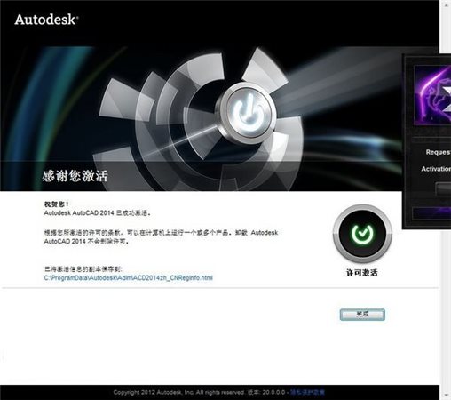 最后复制Activation中的激活码至“输入激活码”栏中,并点击下一步完成激活,这样就完成了Autodesk产品的注册了。