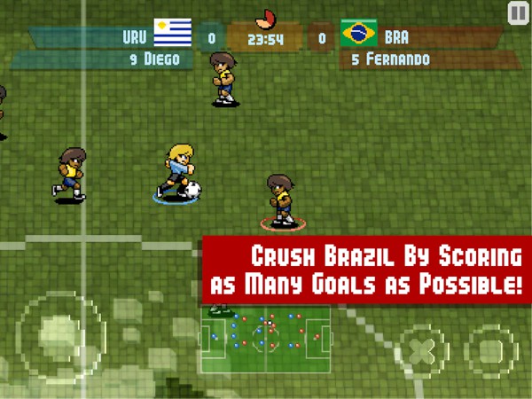 在游戏当中你只需要控制左下角的虚拟摇杆还有右下角的传球和射门两个按钮,就可以轻松搞定所有的操作。圣堂表示向我这样的伪球迷而言,终于找到操作不那么复杂的足球游戏了。