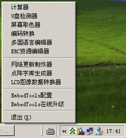 工具包括:EmbedTools集成一些开发工具,这些工具主要用于嵌入产品开发,也可以作为PC软件开发工具。 安装后在任务条的托盘区出现黄色的△图标,鼠标左/右键点击后弹出菜单...