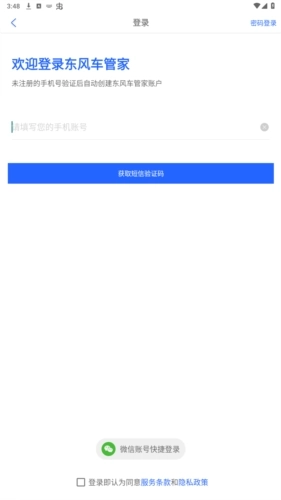 2、登录时可在手机号和微信账号中任选其一,若选择手机号登录,则需输入对应的手机号;