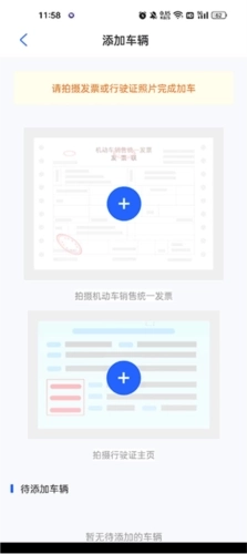 3、拍摄发票或者行驶证照片完成加车。