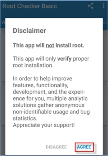 步骤2:在Android手机上启动RootChecker应用程序,接着会出现如下界面,您只需点击“同意”按钮就行。