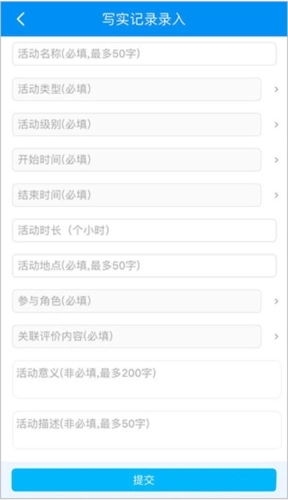 3、学生点击“写实记录”选项,可录入相关信息,点击“提交”按钮完成操作。