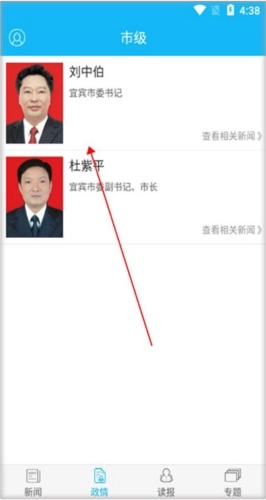 3、用户在首页右滑就能查看市级书记、市长等相关新闻。