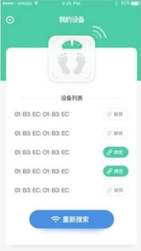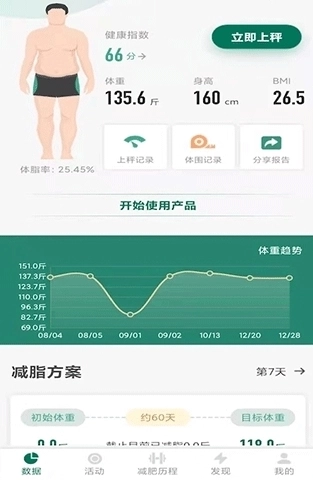 1、迅速连接个人的智能称重设备,即可查看自身的称重数据