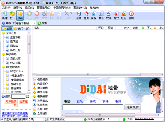 BitComet是基于BitTorrent协议的p2p免费软件;高效的网络内核,多任务同时下载依然保持很少的CPU内存占用;支持对一个Torrent中的文件有选择的下载;磁盘缓存技术,有效减小高速随机读写对硬盘的损伤;只需一个监听端口即可满足所有下载需要;自动保存下载状态,续传无需再次扫描文件,作种子也无需扫描文件;支持多Tracker协议;绿色软件,不需安装,仅运行时关联.torrent文件;多语言界面。原名SimpleBT。