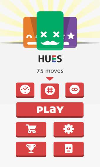 《拼拼色调 Hues Game》是一款类似《小3传奇》及《2048》的益智游戏作品。游戏玩法基本无异,唯一的变化大概只是把数字相加变成了一张张画有可爱表情的彩色方块,不过萌萌度瞬间上升。在4x4的棋盘中,玩家必须通过上下左右划动屏幕来移动方块,每次移动都会在空格中随机生成一张新方块,而当相同的色块合并后则会拼成更高阶的方块。游戏结束后会按照棋盘内的剩余方块的颜色转换成分数。★直观的刷卡滑动/移动输入(也QWERTY键盘输入的键盘设备,游戏手柄控制器也支持)
