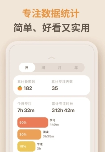 2、专注数据统计:具备详尽的专注数据统计功能,帮助用户清晰掌握各类专注时长的分布情况。