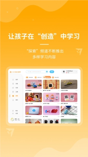 它搭载了功能强大的App,里面包含海量原创3D模型,开箱即可打印,让3D打印智造万物从此变得简单,每个家庭都能轻松上手。
