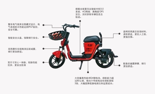 喜宝达共享电单车由我们自主研发、设计并生产,是一款完全符合新国家标准《电动自行车安全技术规范》要求的电动自行车。其车辆标准设定为:车速不超过25KM/小时,车重不超过55KG;车身采用人体工程学设计,核心锂电池的续航里程可达80KM。