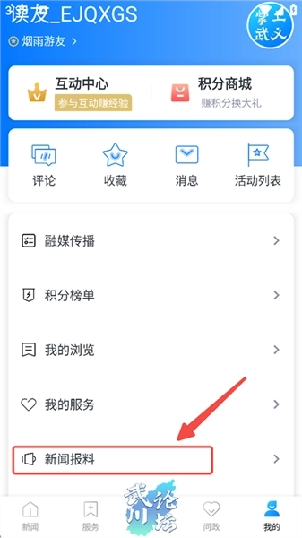 2、进入我的主页界面,再来点击【新闻报料】。