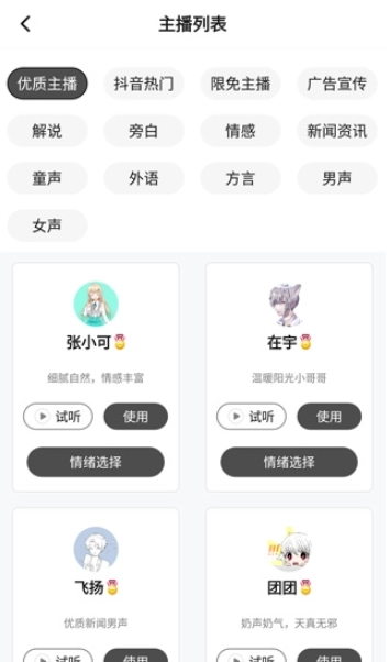 1.音色库资源极为丰富,涵盖90多位风格各异的主播声音,其中包含方言与英语等多种类型,能够充分满足多样化的使用需求