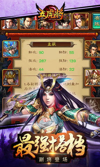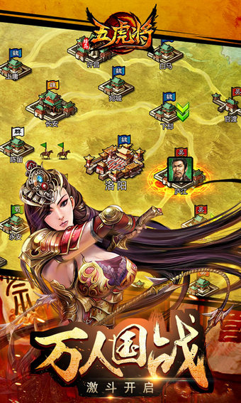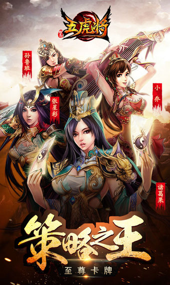 《五虎将》是一款拥有角色扮演成分的策略卡牌手游。气势磅礴的万人国战、醇厚史诗的场景和画面,霸气美型的人设,华丽的战斗以及极高策略性的副本关卡让你欲罢不能!快叫上小伙伴们一起来征战天下吧!