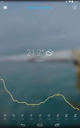 Bright Weather界面非常简洁漂亮,支持未来7天的天气预报,左右滑动屏幕可以在小时天气,7天天气以及地图天气三个界面进行切换,同时还内置了天气水印相机功能。【Bright Weather软件特点】