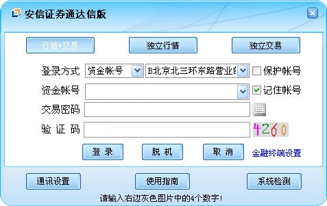 2.点“独立行情”登陆,即可使用(需要交易时可以选择:“行情+交易”登陆)。