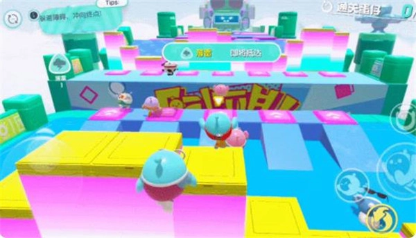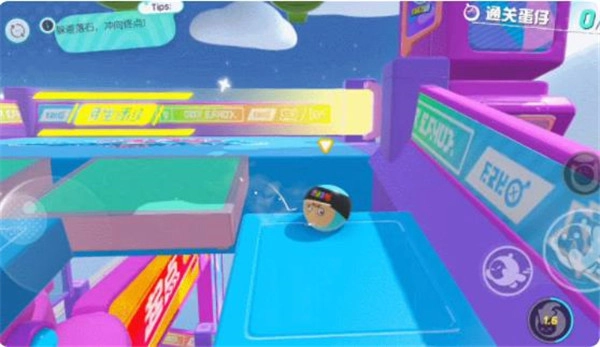 1、善用滚蛋模式拿第一 竞速玩法的一大挑战在于各类障碍物,比如翻转的地板、摇晃的摆锤、移动的方块和反向的履带等,这些都会影响我们快速通关。普通障碍物可以找准时机慢慢跳过去,但最快捷的方式无疑是开启滚蛋模式。进入滚蛋状态后,角色速度会提升,跳跃距离也会随之增加,因此遇到需要跳跃(或等待时间较长)的障碍时,直接用远跳就能轻松过关。