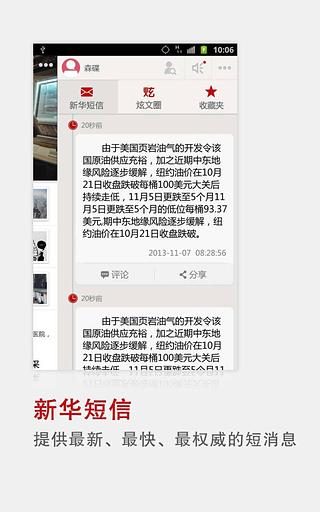 新华新闻是新华网的官方新闻客户端应用软件,是新华网自主研发的一款基于云平台的移动应用客户端,目的是为用户提供权威、准确、及时的新闻资讯和专题报道。新华新闻具有内容精选、使用便捷、访问快速、配置灵活等特点。软件设计特别注重用户体验,符合移动终端用户的操作习惯和阅读心理。后续版本中还将丰富交互应用和集成服务功能。