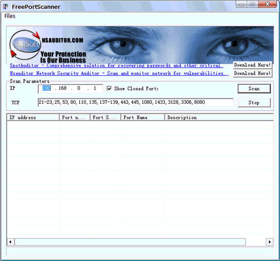 FreePortScanner 是一款小巧、高速、使用简单的免费的端口扫描工具,用户可以快速扫描全部端口,也可以制定扫描范围。
