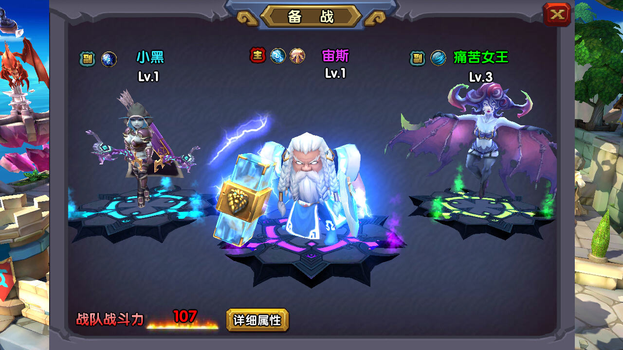 - 战队战斗力是3个英雄的属性之和。