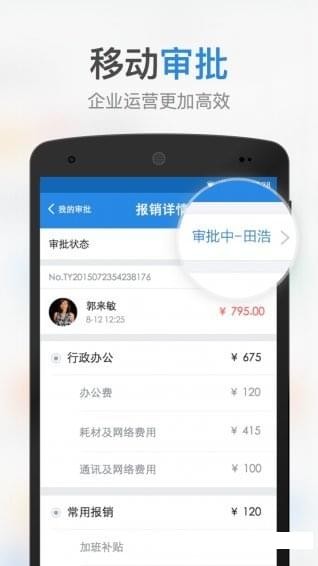 审批:可制作企业专属的审批表单,自定义审批流,随时提交随时审批。