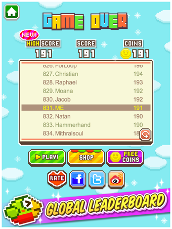 《冲天鸟 Soaring Bird》是一款简单好玩的小游戏。有期待过一飞冲天的感觉嘛?来玩玩冲天鸟,点击屏幕左边往左飞,右边往右飞。看你能冲到多高呢?