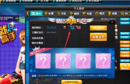 在QQ飞车游戏里,玩家若想解除情侣关系,需点击右侧栏里的个人信息。