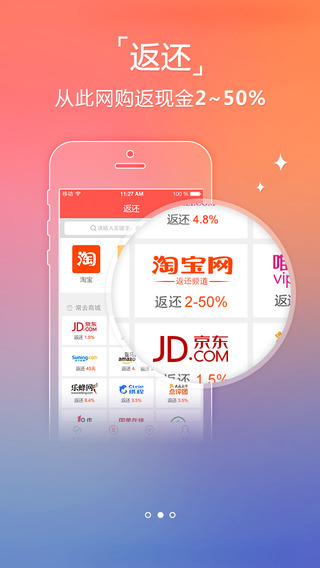 2.返还——淘宝天猫+800家知名商城,购物返还随时随地,返还最高50%