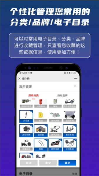 便捷查询:我们提供多元化的查询入口,可适配品牌及分类信息,保养件品牌覆盖最全面。