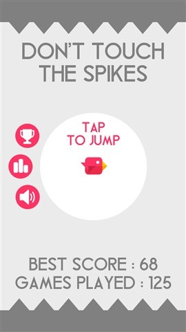 游戏玩法非常简单,跟《flappy bird》极其相似,只不过一只小鸟是不断的穿越杆子向前飞翔,而这一只小鸟是在一个围城中,来回飞翔,相比之下,这次的小鸟好像比较可怜,锯齿状的钉子随机出现在屏幕的四面,你完全不知道它下一秒会出现在哪,极其考验大家敏捷的反应能力。