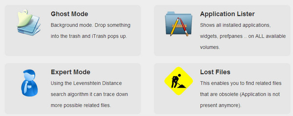 mac os x 平台上一般删除软件仅仅需要在应用程序内删除程序文件即可.但是其实还会有一些文件留存在系统内, 这些文件比如包含 文件注册信息 和 配置信息 以及用户数据的留存.有些用户希望能让卸载更干净一些, 其实个人觉得一般删除应用程序主文件即可. 但是对于希望能彻底清理垃圾文件的用户可以尝试一下这款小巧的软件. itrash .