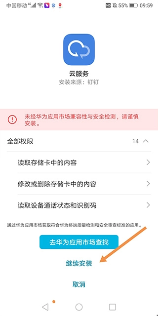 1、首先在本站该应用后就可以像其它软件一样在华为上,时会跳出华为应用市场检测机制,可以忽悠点击【继续】即可