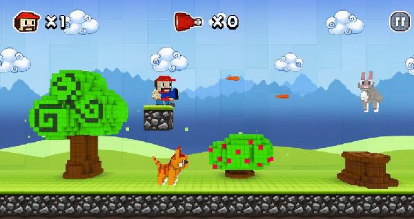如超级马里奥系列一样,《像素猎人(Pixel Hunter)》也是一款横版闯关游戏,主角的武器被森林里的小动物们偷走了,而他想要去夺回来。游戏的过程很逗,小兔子居然会发射胡萝卜来打你,而主角被打中,红色的小帽子会掉下来露出秃顶的脑袋,如果再被打到,连假发都会掉下来…游戏比较简单,就单纯捧着把小*一路跳跃突突突剿灭调皮的各种小动物就行。游戏有5个不同的场景,还有 BOSS 战。