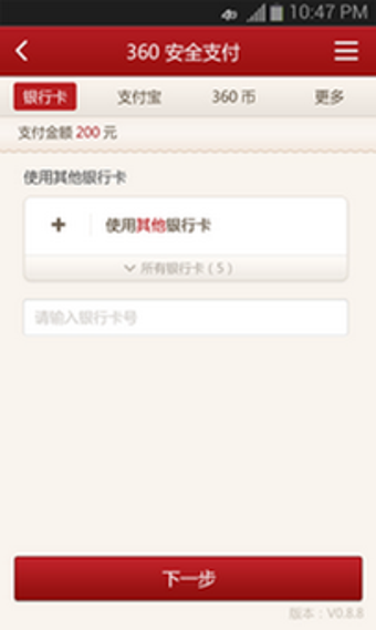 在手机端安装360安全支付插件后,用户即可在合作商户的手机客户端进行付款时调用此插件。360安全支付插件为用户提供安全、方便、快捷的支付服务,保证用户银行卡等支付信息的安全,让您尊享便捷安全的移动支付体验。