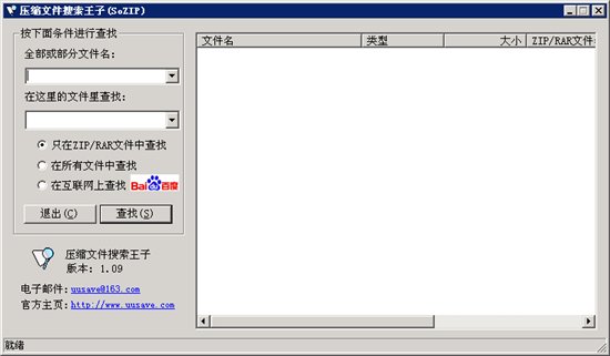 压缩文件搜索王子,是一款文件搜索工具,专用于在压缩文件(ZIP/RAR)中搜索指定文件。支持多线程,高效稳定,欢迎试用