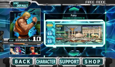 音律拳皇是一款节奏+格斗游戏,收录了大量的SNK经典作品的音乐,比如饿狼传说、侍魂、合金弹头中的经典音乐。而战斗方式采用了一种叫做节奏战斗系统“Rhythm Battle System”来实现,类似于一个圆环出现在屏幕上,随着音乐的节奏来触摸屏幕,最终实现人物的连击动作。