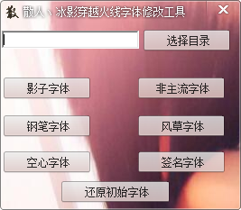 CF穿越火线冰影字体修改工具下载1.0 免费版_永久可用 冰影CF字体修改器是一款免费的穿越火线字体修改工具,可以将CF客户端的字体修改为各种好看个性的字体,包括非主流字体、签名字体、空心字体等等,让你的CF界面与众不同。