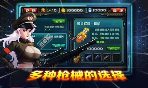 &四大主角自由切换,十九种枪械,12个游戏场景,让你的成长之路充满无限的可能 &精致美观的游戏界面,瞬间将你带入科幻世界中无法自拔 &丰富华丽的武器装备,绚丽无比的技能特效,点燃你心中那一团成为英雄的烈火 &奇迹般的游戏场景,让你领略未来地球的风光,体会异星战场的奇幻