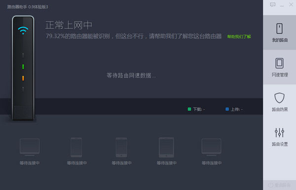 路由器助手能够帮您查看正在一起上网的电脑、电视、手机及平板等设备,方便您查看这些智能设备的信息,同时还可以管理这些设备的网速。今后我们还将提供更多的特色功能,让您的普通路由变得更加智能,更加人性,更加懂您