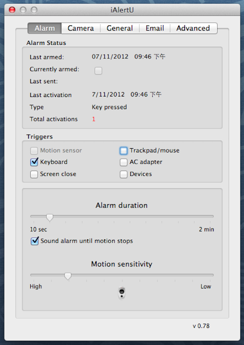 AlertU是一款实用的Mac防盗工具,当贼偷走Mac后,iAlertU会自动闪屏并发出超级尖利的报警声,同时Mac的前置摄像头会将小偷的面目拍摄下来留作记录,你还可以设置警报邮件自动发送功能,以此在第一时间获得告知,此外iAlertU还支持使用Apple Remote来启动或关闭防盗系统。【软件特点】