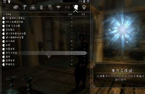 上古卷轴5工作台mod是一款游戏内使用的随身工作台补丁程序,玩家有了这款上古卷轴5万能工作台,随时随地可以锻造MOD;前往商店购买书信,电力宝典:电力工作站,学习之后按 Z 键就可以召唤菜单,可以干全部工作台的事情,炼金术、烹饪、附魔、锻造等等。