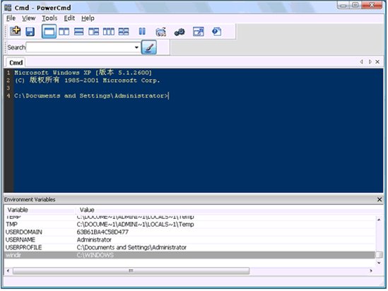 PowerCmd是一款增强版本CMD的工具,CMD是Windows平台下的DOS命令行环境,这个程序为CMD提供了图形化的工作界面。可以比普通CMD工具提供更多选项