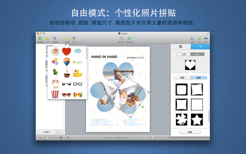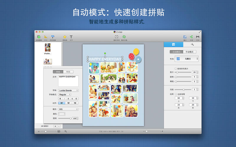 全程自动,使用简单,功能强大只需三步即可自动制作照片拼贴. 使用简单, 适用于各种经验层次的用户.