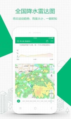 彩云天气app这是一款天气雷达类应用,中国大陆第一个可以预报几点几分下雨的应用。彩云天气app可以精准到分钟级别,预测实时天气变化,堪称目前国内第一款实时降雨雷达应用。用户们可以知道几点几分会下雨,雨下得多大彩云天气可以告诉你未来一小时几点几分会下雨(雪),你可以提前收衣服或者早点回家而不会被雨淋湿。你也可以通过我们的降雨量地图看到整个城市最近的降雨动态,如果广渠门雨太大,我们可以绕着走不是?
