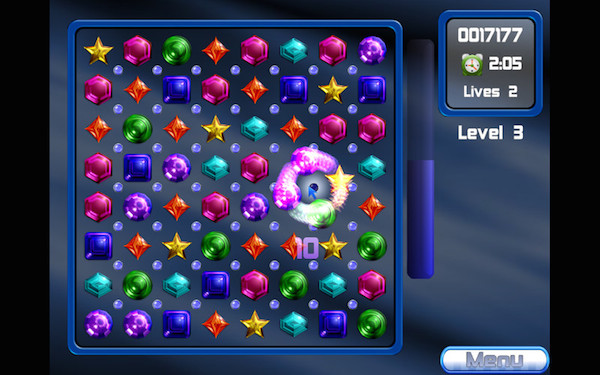 【1】宝石消除Mac版是一款风格独特的消除类益智游戏,戏引入了物理引擎,所有的宝石的形状也是不规则的,采用划线消除的方式,比传统的消除游戏更有新意。