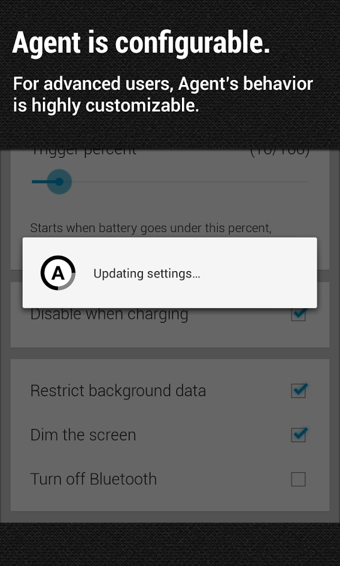 ★驱动器代理由蓝牙和动作感应(活动检测)触发。它可以被配置为朗读短信,语音,自动以短信族和应答呼叫响应,让他们知道你驾驶(编辑消息)和单顾自己钦点名单回应★电池代理触发器在您选择的百分比。它有助于让你关闭蓝牙,调暗你的屏幕的选项,节省电池,并恢复到正常的自动设定,当您您的手机充电。还可以让你知道有多少电池它救了你。