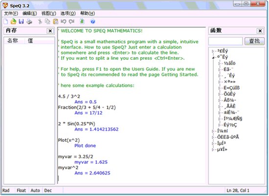 SpeQ Mathematics 可以计算任意定义变量、计算机复杂的数学公式、绘图