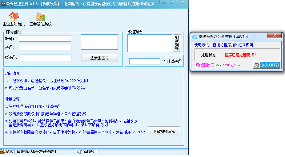 1.登陆账号密码并且输入频道密码2.双击所需修改权限的频道号码进入公会管理系统
