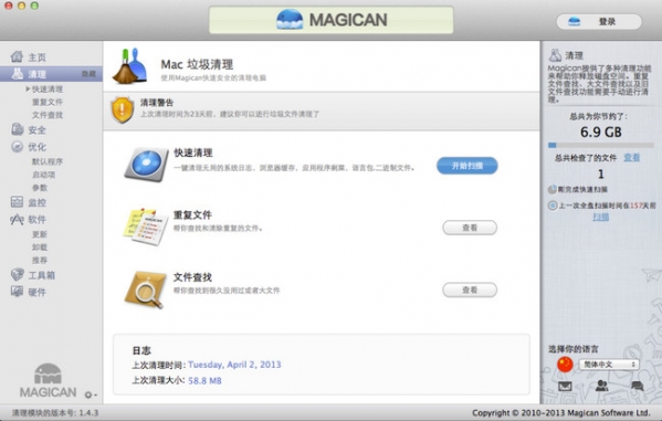 Magican帮您一键安全、快速、便捷地清理电脑上无用的文件。