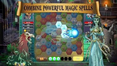 黑暗神石游戏中玩家可以通过魔法技能来进行特殊消除,当消除成功是另一方会减少气血,有一方气血为零时游戏结束,另一方获胜,当然释放技能是需要一定的魔法值。