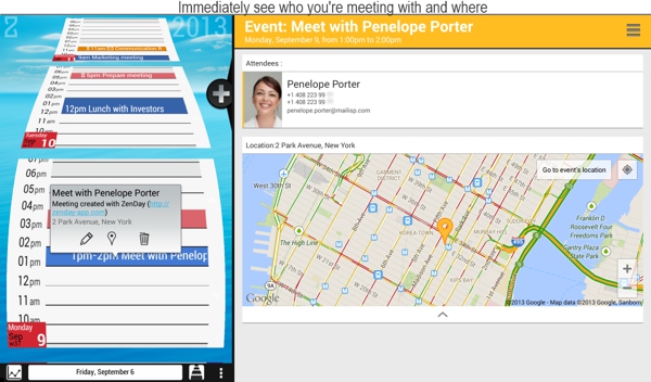 “任务/活动/谷歌日历的无缝集成,使得它来管理你的一天的完美工具。”